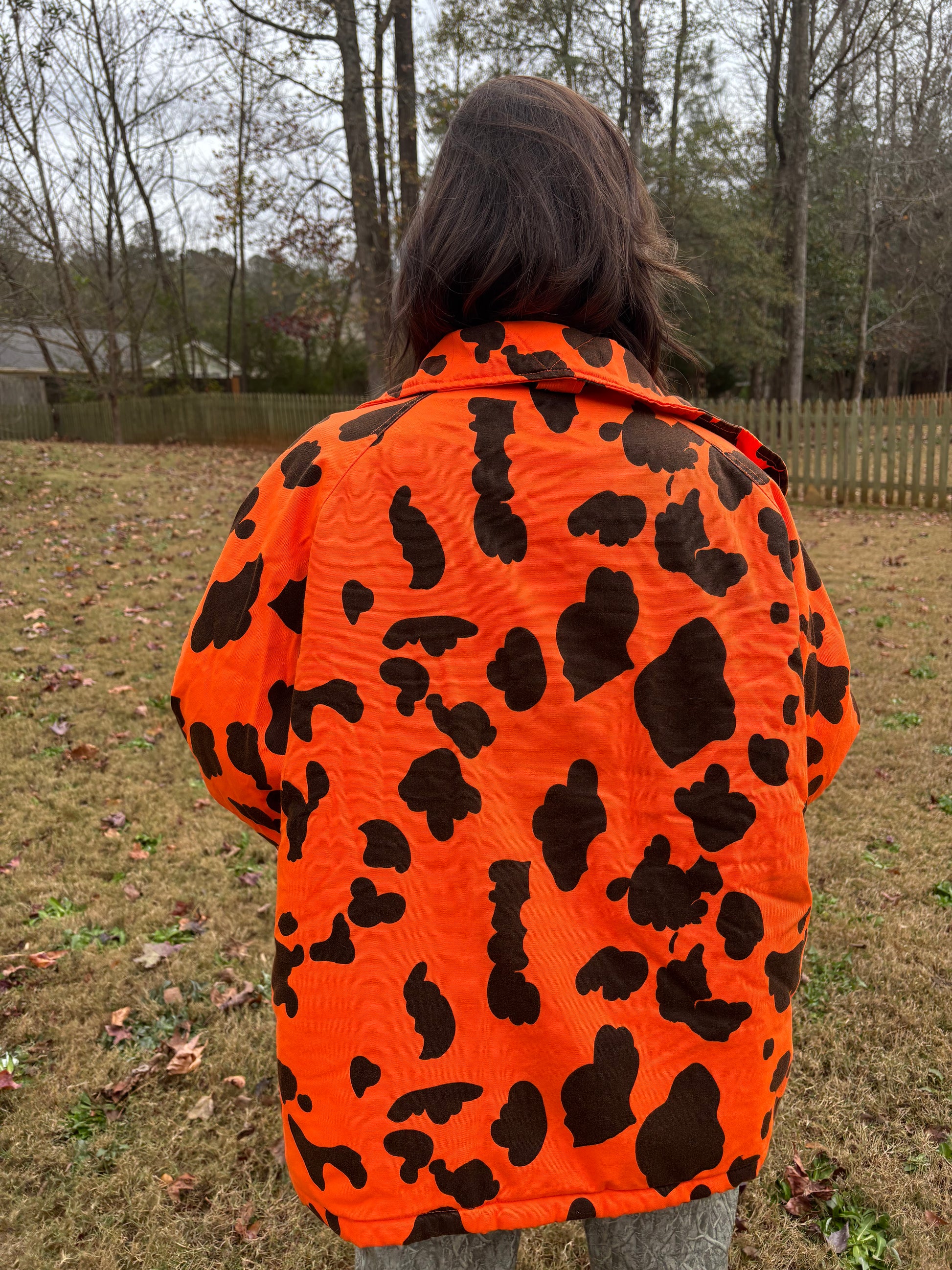 This Mountain Prairie blaze orange hunting jacket is an absolute standout piece. Bold, high-visibility camo on soft canvas gives it that rugged, old-school fieldwear feel while still being incredibly comfortable to wear. The inside is lined for warmth, and the exterior features classic hunting-jacket construction made for long days outdoors.
